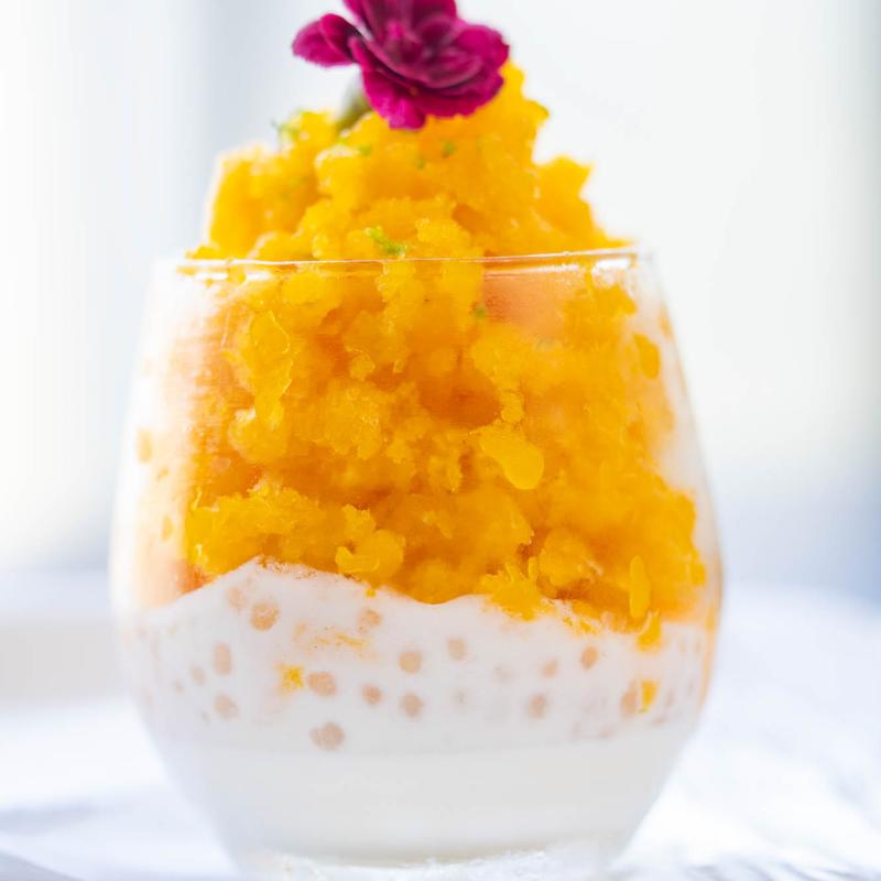 Lime Leaf Panna Cotta, Haupia Tapioca, Hayden Mango Sorbet, Shaved Mango